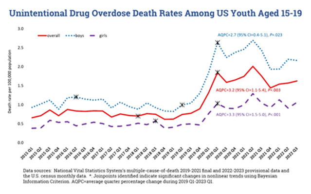 • OD death totals in America have increased 53.5% between 2019 and 2022.